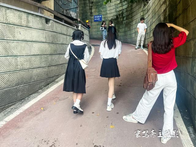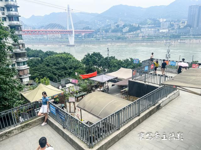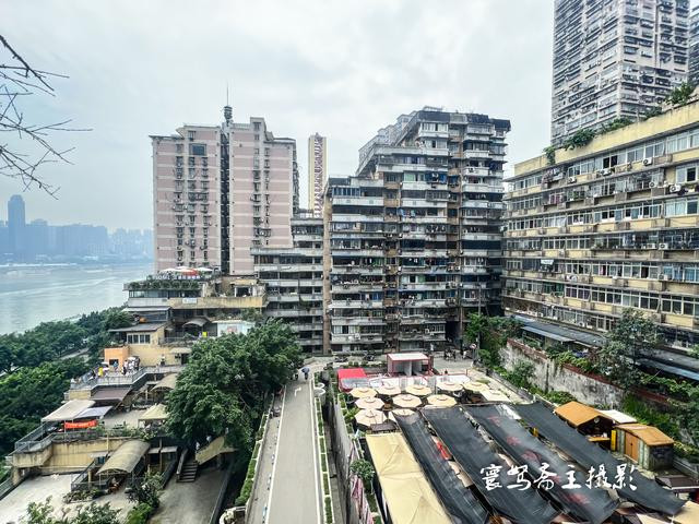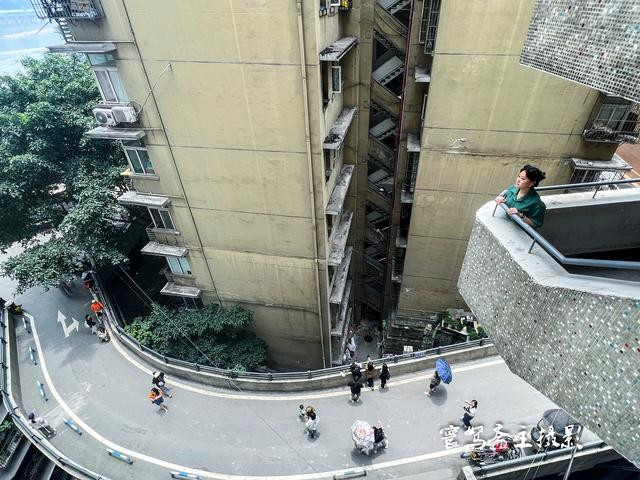 楼栋的外面是一条支马路,路上有好多来此打卡的外地搭客,而这条支马路亦然看长江江景的绝佳之地,沿着这条支马路往外走,就不错一直走到白象街的老街上。