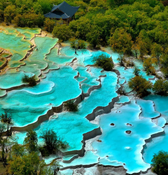 其次是熊猫海,是一派蓝色的湖泊,与周围的树木和山脊组成了壮丽的画面。这里湖水领略见底,不错俯身不雅看水底的好意思景,况兼湖中会有许多小鱼游来游去,与你互动,相称真义真义。